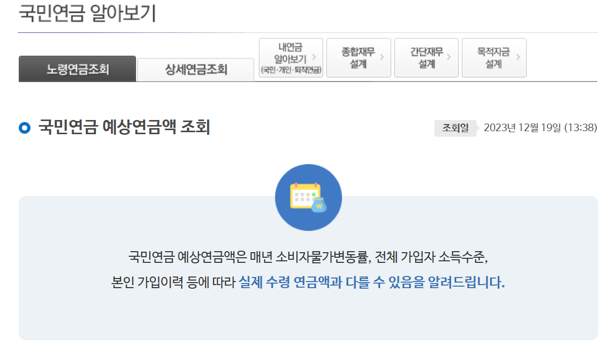 국민연금 예상수령액 조회