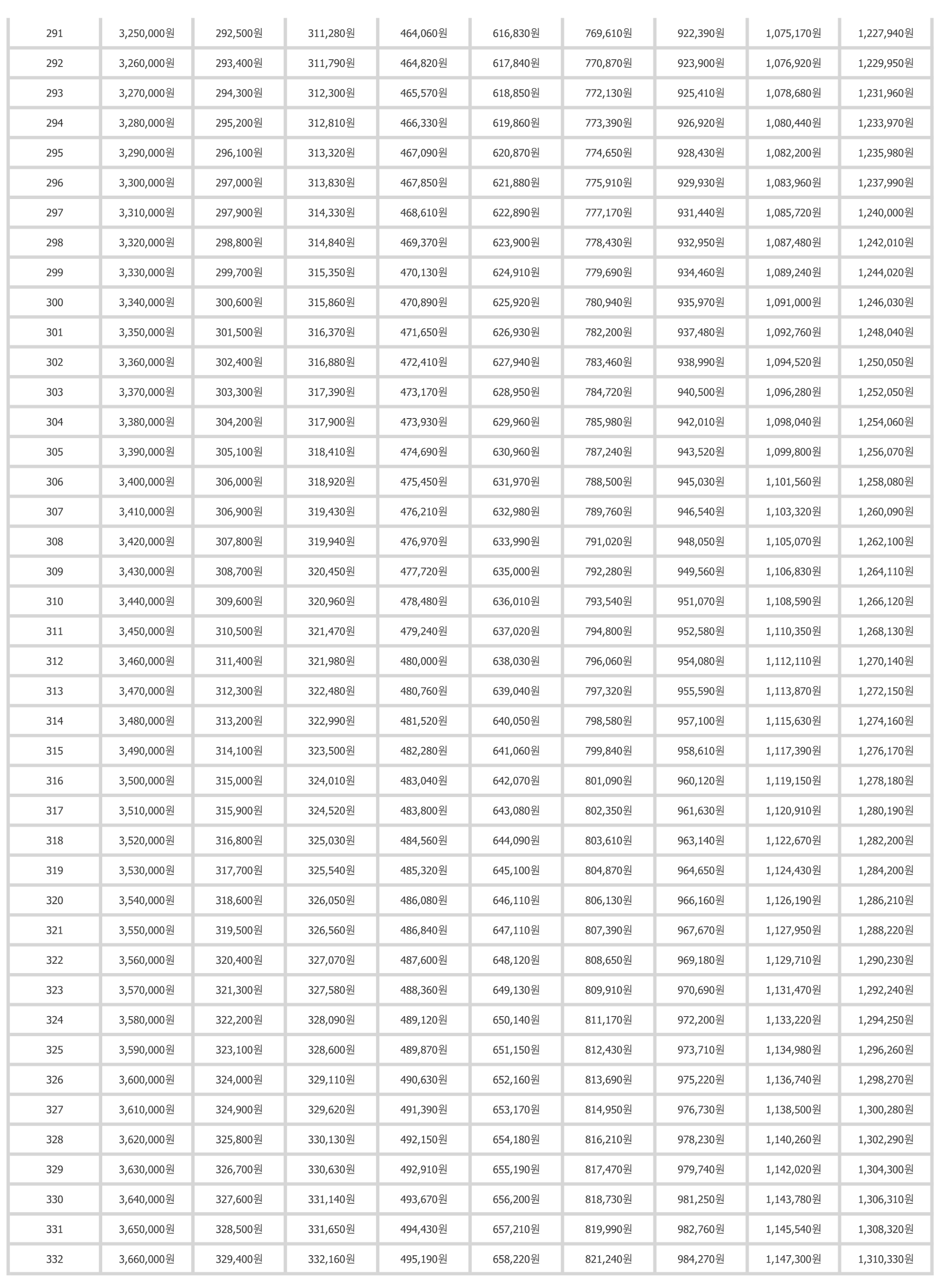 1. 국민연금 예상수령액표 월소득을 기준으로 조회하는 경우 좌측 2번째 기준소득월액 평균액에서 금액을 찾습니다.