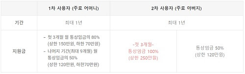 출산한 근로자와 그 배우자의 고용안전을 위해 정부가 육아휴직을 30일 이상 부여받은 근로자에게 급여를 지급합니다.